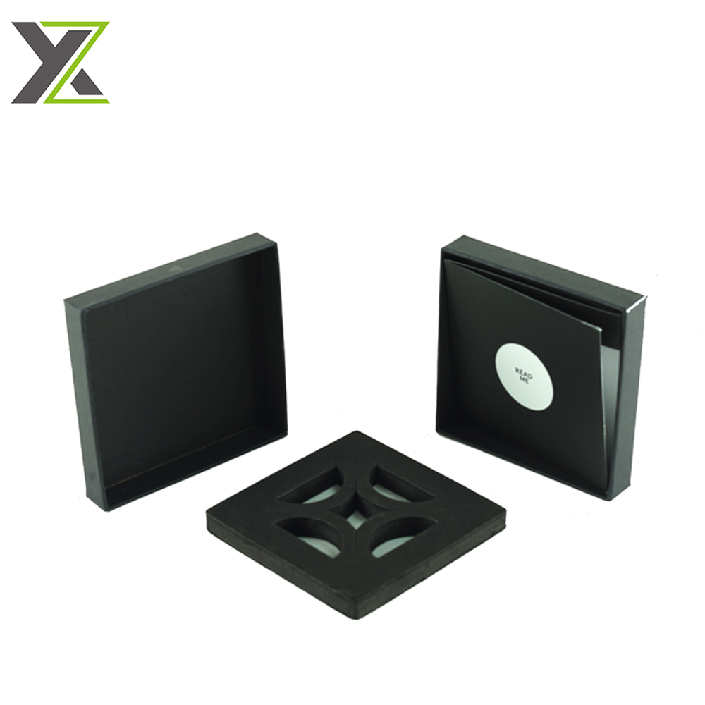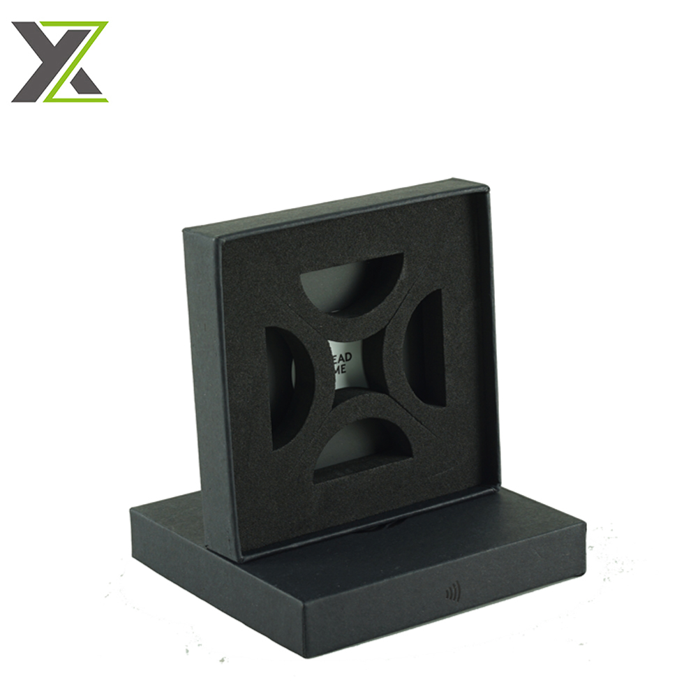 High quality Foil logo black cardboard boxes with foam insert for Electronic Payment Ring