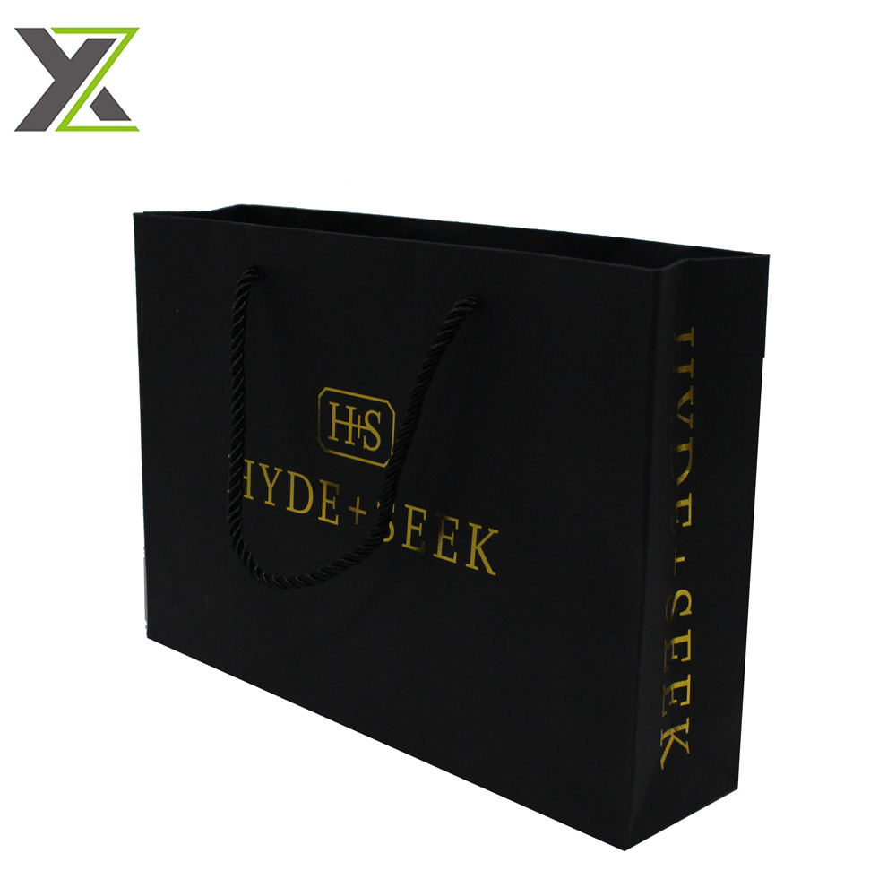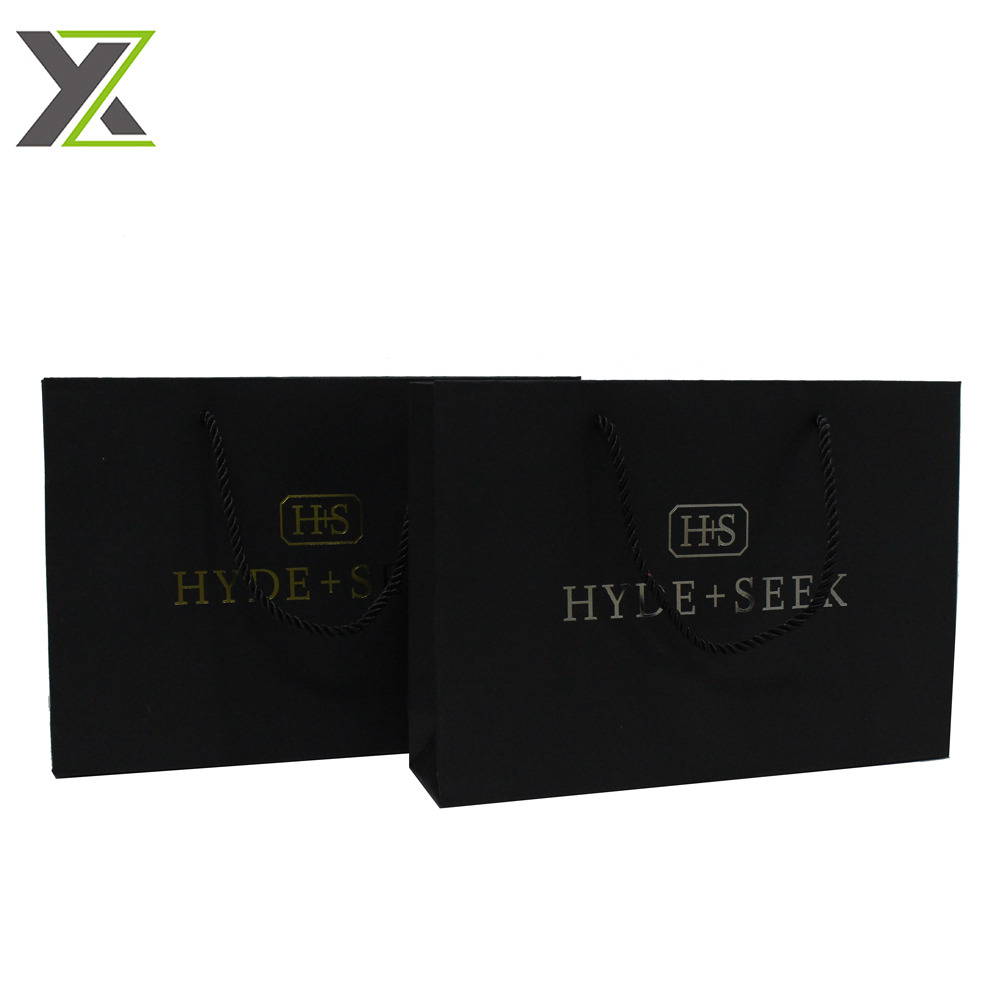 Custom OEM brand shoes gold foil logo black gift shopping paper bags